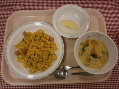 今日の給食は、「メキシカンライス」が主食の献立です。