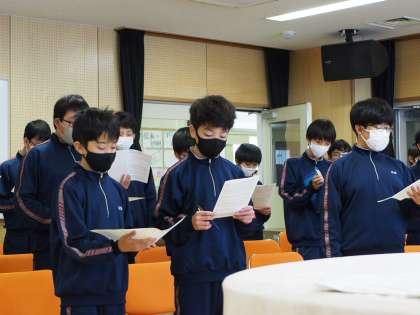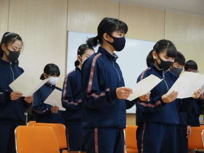 11期生の音楽授業です。マスクをつけての合唱練習の苦労は、とにかく声が届きにくいこと。それでもみんな真剣に取り組んでいます。