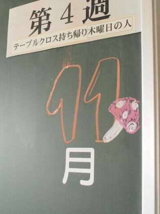 週末をむかえたフナキボです。秋も半ば、朝焼けの空もひんやり空気が澄んでいます。3年生の教室には、秋の味覚とリラックス方法を伝授する掲示がありました。来週は期末考査。ガンバレ〜9期生!