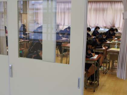 試験開始後にさきほど友達同士で確認作業をしていたクラスに行ってみると。。近づくのがためらわれるほど真剣さが伝わってきます。成果が出ることを祈ります。