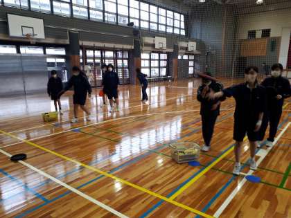 ボッチャ、フリスビー、バレーボールを交互に挑戦しています。みんな楽しそうに運動に親しんでいます!(宮内)