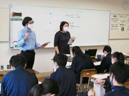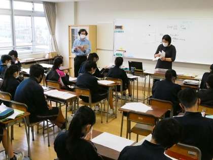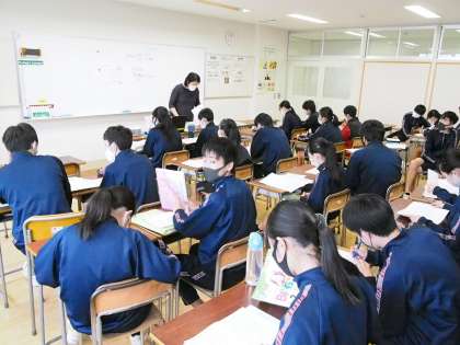 10期生の英語答案返却の時間にALTの先生がいました。発音問題に関する答え合わせはALTの先生が担当しています。90点が取れている生徒に「すごいね〜」と言うと「本当はもう少し、100点を狙っていたのですが」と頼もしい発言が。そう‘より高みをめざす’ことが大切です。3学期は満点をめざして頑張って!