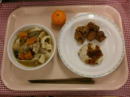 山梨県の郷土料理「ほうとう」と「せいだのたまじ」を出しました。