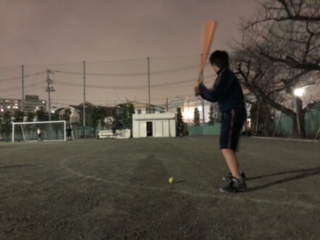 野球部では、暗くなってボールが見えなくなったらテニスボールを使って低めの打ち方を練習しました。暗くなっても細かいことに特化した練習で上達します!