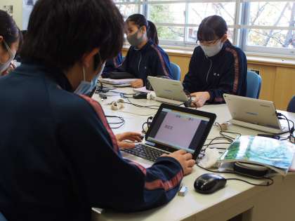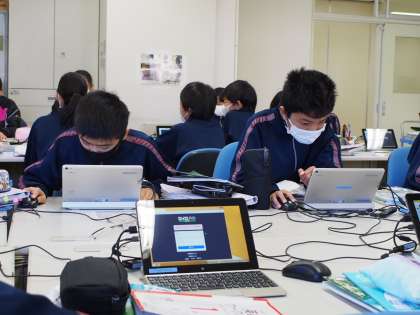 そして後半はロイロノートでの作業です。「ロイロノートやりたいで〜す」とつぶやく生徒もいて、生徒の中にもすっかり定着してきたようです。