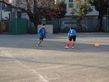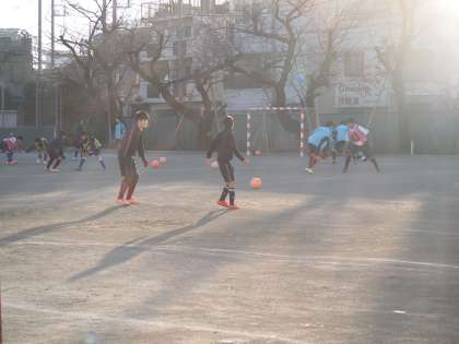 サッカー部は早朝に朝練習をしています。ひんやりした朝の校庭で行うサッカーも気持ちがよいものですね。