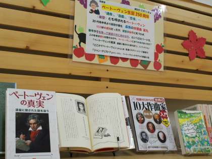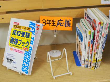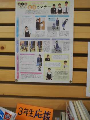 今週から図書室前の展示スペースも衣替えです。音楽家特集&3年生応援コーナーが設置されています。そして「面接のマナー」も貼ってありました。9期生のみなさん。ぜひ、見てくださいね。