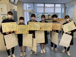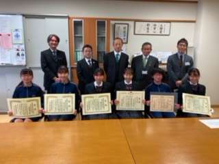 本日、校長室内で税の作文の表彰式が行われました。夏休みの課題として、9期生が取り組んだ作品のうち6名の作文が入賞しました。