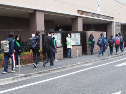 土曜日の朝、1年4組の保護者の方にあいさつでフナキボ生の応援をしていただいています。あいさつ運動は、例年たくさんの方にご協力をいただいていますが、今年度は特に1年生の当番で大勢の方に声かけをしていただいております。ありがとうございます。