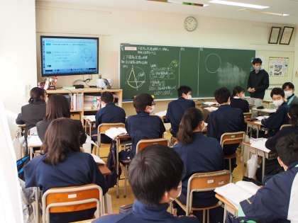 今日は教育委員会から授業を察のためお客さまが。数学の先生から「今日はお客様がいらしています」と紹介があり、一瞬後ろを向いたのですが…すぐに授業に集中していました。さすが3年生、さすがフキナホ生。