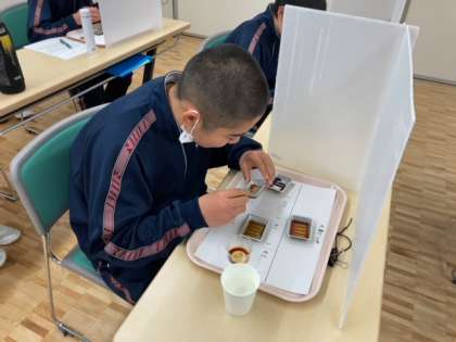濃口しょうゆ、薄口しょうゆ、たまりしょうゆ、白しょうゆ、再仕込みしょうゆの5種類をテイスティングして答えます。全部当てられるかな?(大居)