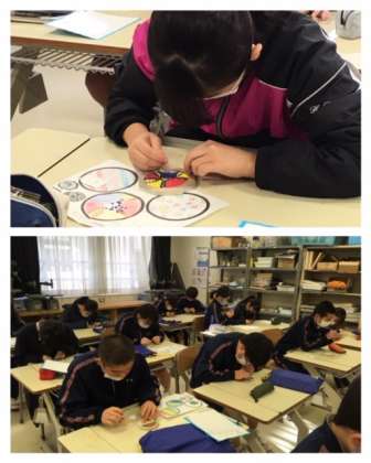 一年生の美術ではモザイクテイストのコースターを制作しています。細かい作業で全集中!結構ハマるようで、授業前に来るとすぐに準備をし、ほとんどの人が黙々と作業開始しています。絵柄が埋まっていくパズルを完成させるような達成感が楽しい?完成してズラっと作品が並ぶのが楽しみです。(美術科 岩崎)