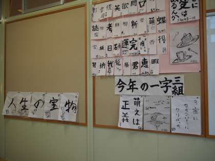 最低気温が1度を記録した今朝7時のフナキボ校内です。師走をあらわす「今年の一字」の半紙もさすがに寒さに震えているかのようです。