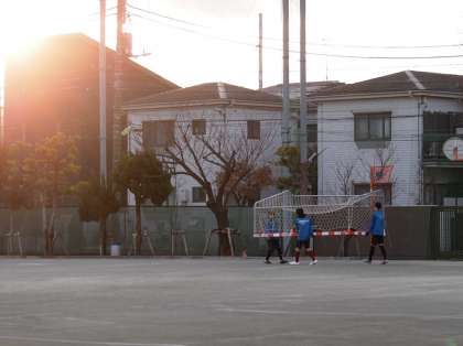 今朝も最低気温が1度でした。あと4日となった2学期です。校庭では朝練習の準備をするサッカー部の生徒が。