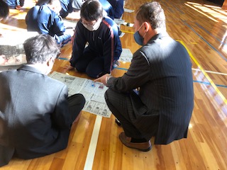 一年生の社会科の宿題は新聞投稿チャレンジです。出前授業で東京新聞の方から「新聞は対話するもの」という言葉をもらいました。新聞の記事の内容について一年生と校長先生が話をしています。普段なかなか話ができない人と新聞がつないでくれました!