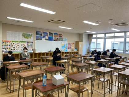 コロナ禍で会場模試が受けられない3年生のために、地域支援本部の方々が、自宅受験の模試を学校会場で取り組ませてくれています。ありがたいことです。本日は7名の3年生が参加しています。色々な方に支えられている受検(験)生です。がんばれ!
