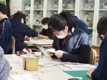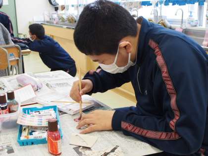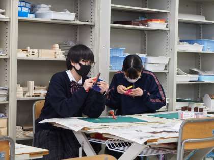 9期生の美術は皮細工の製作を着々と進めています。みんな真剣そのもの。形が見えてくると、気持ちも高まります。