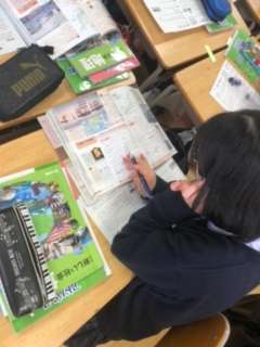 横浜の校外学習に向けてはじめて事前学習を行いました。今日は横浜の歴史について、教科書を読んでワークシートを記入しました。
