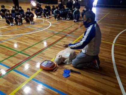 AED(自動体外式除細動器)の使い方も学んでいます。(宮内)