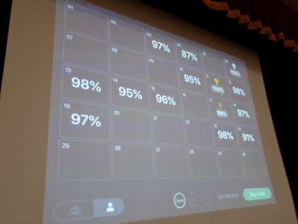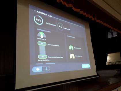 胸骨圧迫の人形には最新の機能がついており、正確に圧迫が行えているかが一目瞭然。