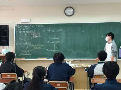 3年生の数学の授業です。入試に向けた、作図の演習をしています。取り組んでいるのは、先日紹介した1年生の授業で学んでいた、垂線や角の二等分線の作図です。入試には1年生で学んだことも重要だと、改めて感じました。(副校長)