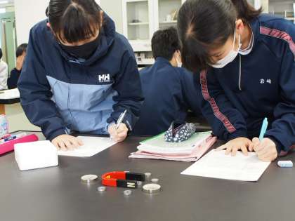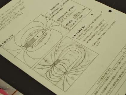 実験結果を図におこす作業です。先生のアドバイスを受けながらプリントに記入しています。そして、一番下の画像が先生から「図がうまい!」とお褒めの言葉をいただいた生徒のものです。