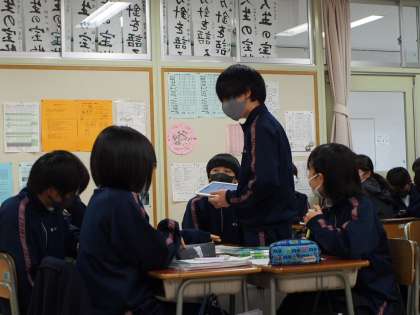 他の班の主張を聞きながらワークシートにも手書きで記入していきます。どの生徒も真剣にびっしり記入していました。