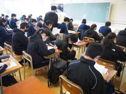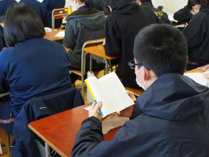 9期生は今、朝読書の時間は自習でもよいことになっています。本を読む、問題集をやる、苦手分野を覚える。それぞれあと少しの時間を大切にしています。