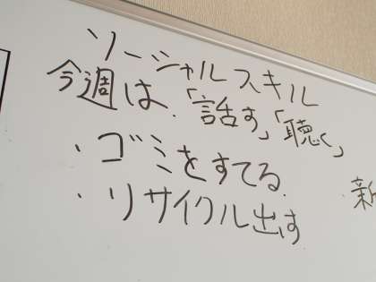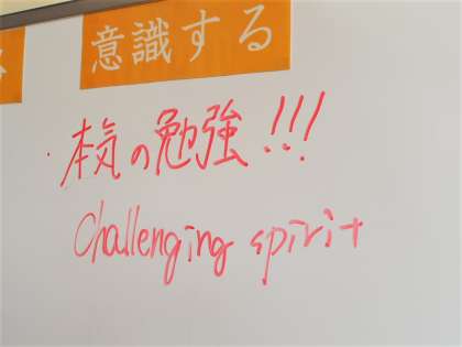 生徒がいない日曜日の校舎ですが、教室のホワイトボードにはフナキボの先生や生徒の息づかいが感じられる言葉やイラストがあちらこちらに。こんなところもフナキボ流!