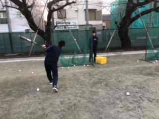 今日の野球部の後半のテーマは低め打ち。バッティングは一日に一つのテーマを設定して20分間集中して打ち込みます。