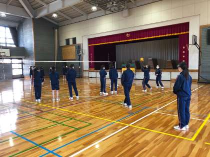 3年生は登校している人数が少ないので、全クラス合同で体育をやっています。