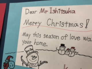 こちらは英語科から。意外なところで自分宛のマッサージカードを見て嬉しくなりました。絵も上手に描けています!