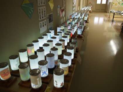 毎年、展示会場の一角だけ明かりを消してこのLEDあんどんの灯がともります。今回は残念ながら、保護者や地域の皆様にこれを見ていただくことがかないませんでした。来年度はぜひ、この希望の灯をお届けしたいと願っています。