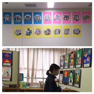 展示発表会に出展した美術部の作品はオリジナルポスターと寄木細工です。