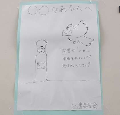 今朝、校内を回った時に発見したポスターです。図書委員会、頑張ってますね!