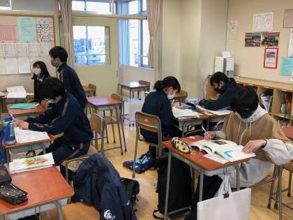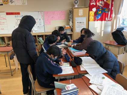 先生に質問しながら、みんなでテストに向けて勉強しています。