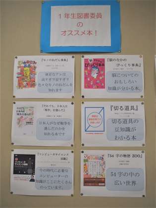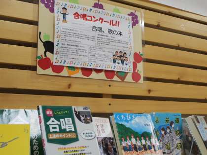 そして今、図書室前には合唱関連本や図書委員が選んだ本が並んでいます。