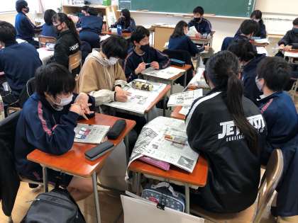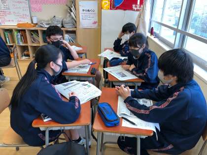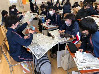 1人2分間の持ち時間で、新聞記事の説明、SDGsのどの目標に当てはまるのか、なぜそう考えたのかを発表していきます。