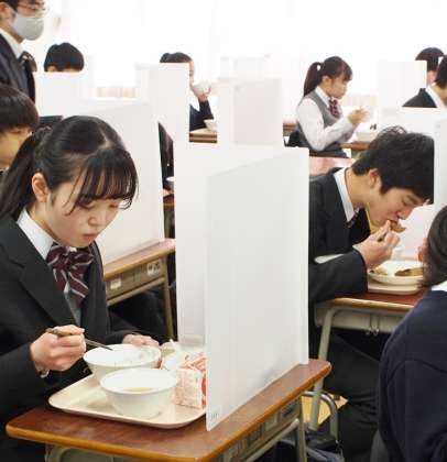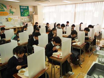 お昼の放送で「三年生は最後のジャンポ餃子を味わってください」とメッセージが流れたので、さっそく9期生のフロアーへ。皆、特大ジャンポ餃子を味わっていました。