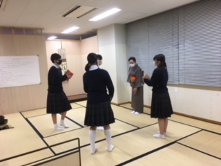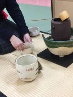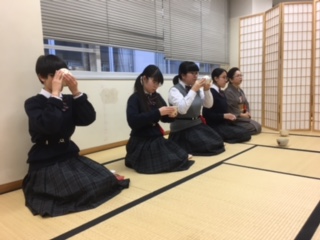 2年生を送り出した後は、3年生でお茶を点てて、来週先生方をお招きする相談をしました。亭主はお道具の紹介や掛け軸の紹介もします。楽しみでもあり、緊張感もあり、最後の一回を今から心待ちにしています。(大橋)