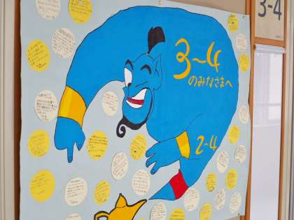 9期生のフロアーには、後輩からもらったクラスレターが掲示してあります。個人のメッセージが貼ってある台紙デザインが、どれも素晴らしく、ここでもフナキボ生らしさが出ています。