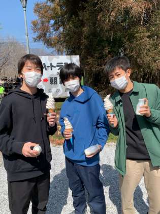 いちご味のソフトクリームを食べた後に、牛乳を振って自分で作ったバターをつけたパンを食べました。とっても美味しいです!