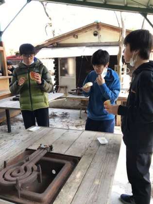 バター作り体験では、実際に自分が作ったばかりのバターをパンにつけて試食しました。野外なのでもちろん室内より安全度は増しますが、体験前の手洗い消毒、そしてパンをもらう前には手指消毒をきちんとしてからの試食です。だからこそ安心して食べられるので、美味しさがより増します。
