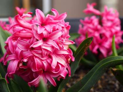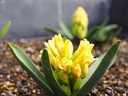 校庭には、春を呼ぶヒヤシンスの花がきれいな色で咲いています。春はもうすぐそこです。