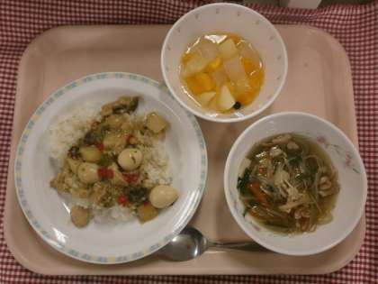 「ガパオライス」は、タイの料理の中でもとても有名な料理です。日本でもコンビニのお弁当やお家でつくれるようなキッドもあります。ガパオライスの意味は、「バジル炒めご飯」だそうです。今日の給食では、バジルやオイスターソース、ナンプラーを少しだけ入れてつくりました。味わって食べてください。