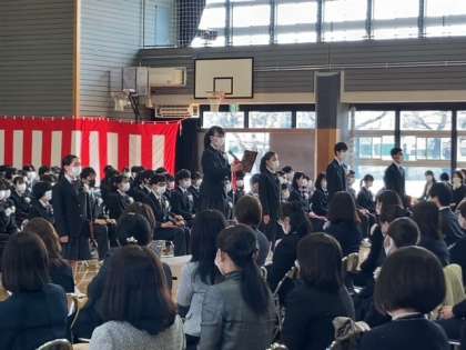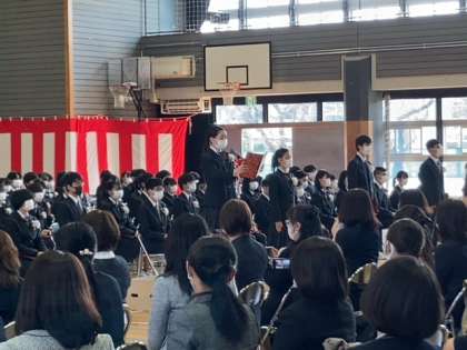 在校生に向けて「できないことに目を向けるのではなく、できることに全力を尽くすこと」、教職員や保護者の方々への感謝の言葉などが読み上げられました。