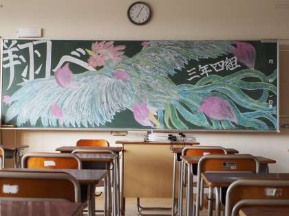 昨日の卒業式の朝、教室を回ると、どのクラスにも黒板アートが描かれていました。そう言えば最近マスコミでも話題になっていたことを思い出し、それにヒントを得たのかとも思いきや、はたと気がつきました。「そう言えば先々週あたりから図書室前に作品集の本があった…」特に今年度の卒業生は、小中高大どの校種も耐え忍ぶことをずっとしてきたのですから、せめて最後くらいは教室に花を咲かせたい心情が伝わってきました。