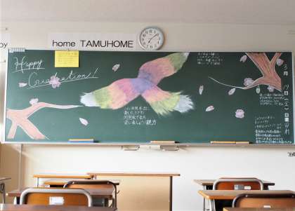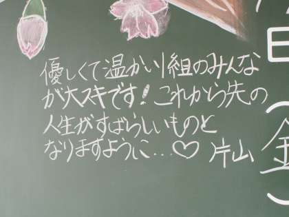副担任からのメッセージも。それにしてもチョークで描いてもクオリティーの高さは変わりません。