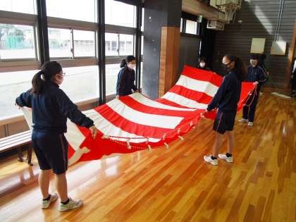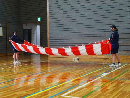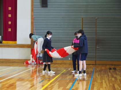 紅白幕を丁寧に片づけてくれた10期生。来年は、みなさんがこの紅白幕で飾られた卒業式会場に入場する立場となります。