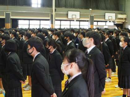 令和2年度の修了式です。1、2年生の学年代表が修了証を受け取り、式辞を聞きました。久しぶりの標準服でしたが、この1年間で成長した姿を感じ取ることができました。